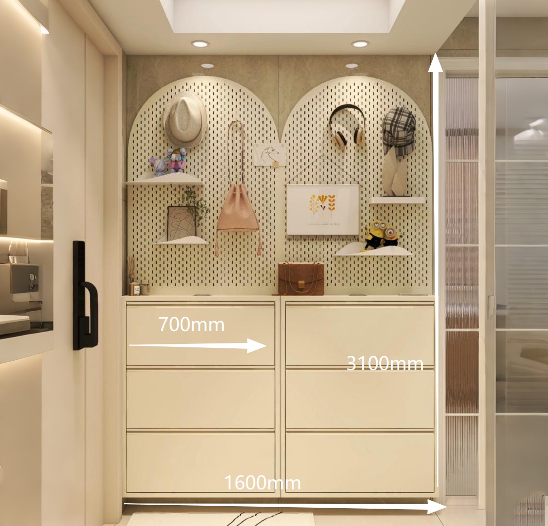 (2) Space Adaptability: The compact design is well-suited for small entryway layouts, integrating shoe storage and accessory display. This makes the entryway both neat and organized, yet full of life and fun, making it a practical and effective way to improve entryway storage efficiency and aesthetics.